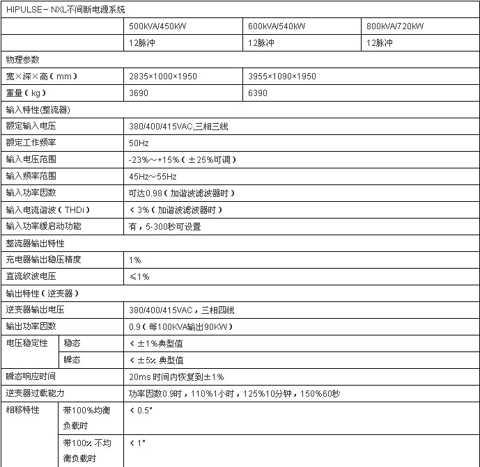 Hipulse-NXL系列大型UPS为三进三出型(三相输入,三相输出)在线式智能交流不间断电源系统,主要适用于大型IDC机房、银行/证券结算中心、通信网管中心、半导体生产线以及大型自动化生产及其控制系统。